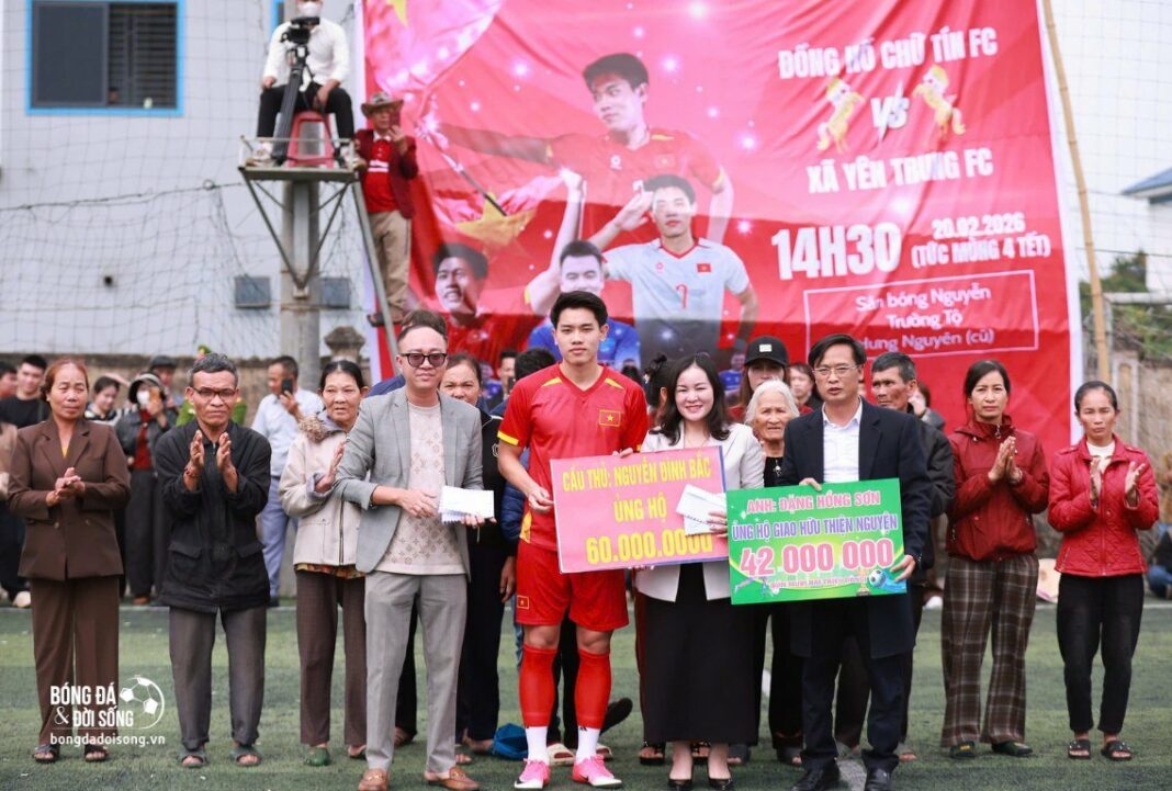 Trong khuôn khổ màn đối đầu giữa Yên Trung FC và ĐH Chữ Tín FC, Đình Bắc đã không ngần ngại trao tận tay số tiền 60 triệu đồng, một món quà Xuân thiết thực đến những hoàn cảnh khó khăn. Đây chẳng khác nào một pha kiến tạo đẳng cấp, không chỉ mang về bàn thắng trên sân mà còn sưởi ấm biết bao trái tim, chứng minh tinh thần “lá lành đùm lá rách” luôn chảy trong huyết quản của một tài năng trẻ đầy trách nhiệm.